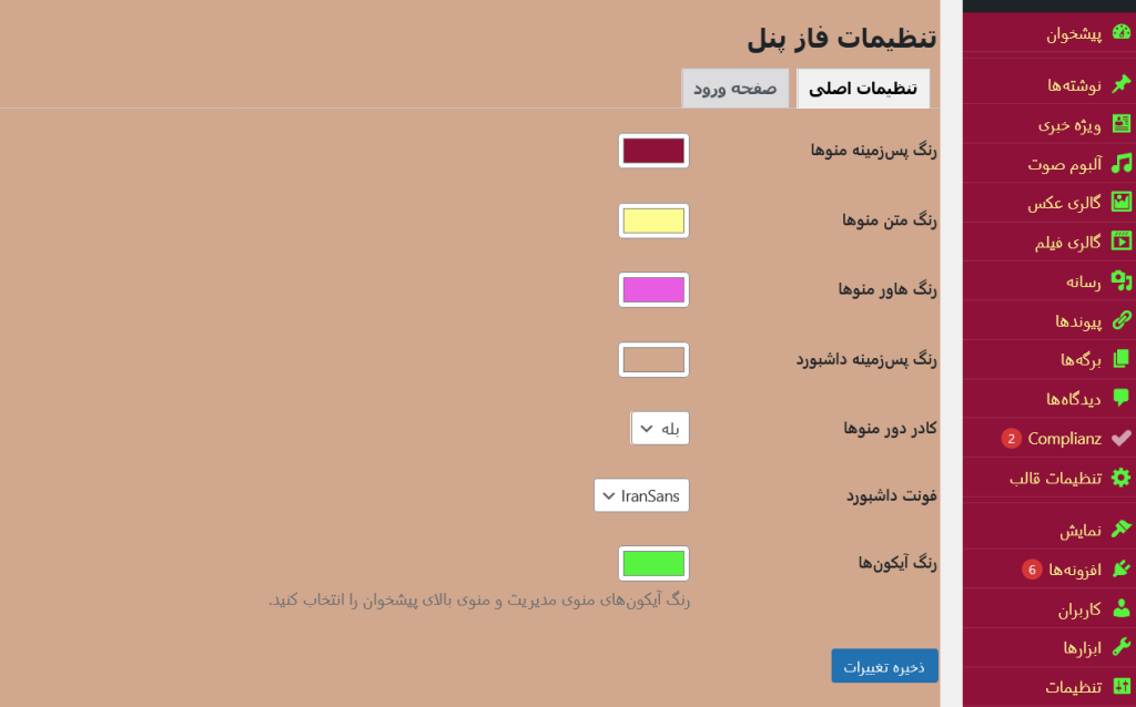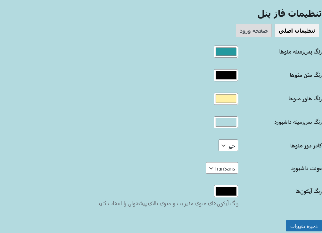 یکی از قابلیتهای مهم فاز پنل، شخصیسازی کامل منوها در پیشخوان وردپرس است. شما میتوانید رنگ پسزمینه منوها، رنگ نوشتهها و حتی نحوه نمایش آنها را تغییر دهید. این امکان برای مدیران سایتهایی که با تیمهای مختلف کار میکنند بسیار مفید است، چرا که میتوانند فضای داشبورد را متناسب با برند یا هویت بصری سایت تنظیم کنند.
